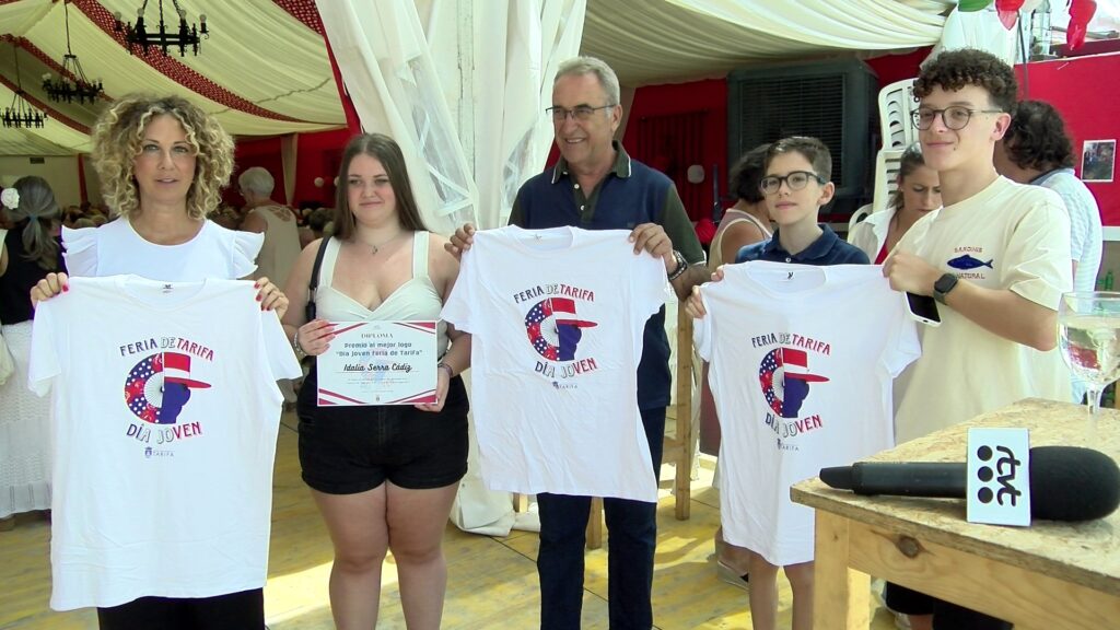 El Día Joven en la Feria de Tarifa 2023 ha tenido camiseta propia con diseño exclusivo para la ocasión. La autora es la joven Idalia Serra Cádiz que también este mediodía ha compartido en el Ferial “la puesta de largo” de su diseño.