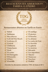 Tarifa vive estos días un mes de enero especialmente dinámico en lo que la restauración se refiere. En apenas 24 horas, algunos establecimientos han subido persiana, otros la han bajado y locales nuevos se han incorporado al mapa gastronómico de la ciudad. Un movimiento continuo que refleja la realidad del sector en temporada baja: adaptación, incertidumbre y ganas de seguir ofreciendo servicio. De ahí que en solo 24 horas tras su publicación, hayamos actualizado “al minuto” la lista de opciones gastronómicas en Tarifa, con descuentos exclusivos en algunos de ellos de hasta el 30 %.