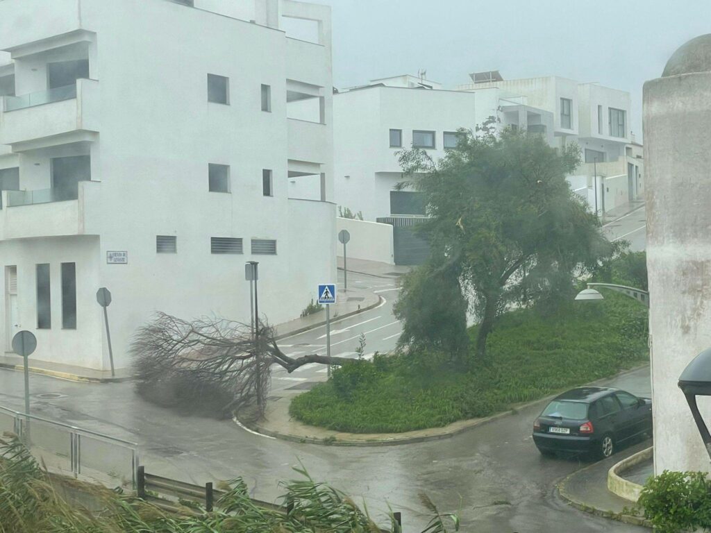 Cortada la carretera del Santuario de la Luz en Tarifa por el temporal Leonardo