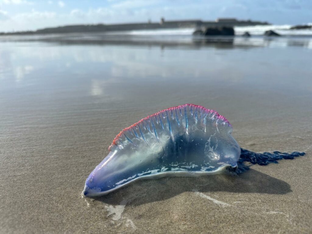 La foto del día es de esta mañana y es evidente, una Carabela Portuguesa arrojada por la marea en arena de Los Lances. No es un caso único, caminar por la playa deja un salpicado de medusas moradas que deben como mínimo, hacer saltar la alarma de precaución, no es un animal inofensivo y hace unos días la marea arrastró decenas de ellas a Tarifa también. Hermosa y peligra, la Carabela Portuguesa en la foto del día.