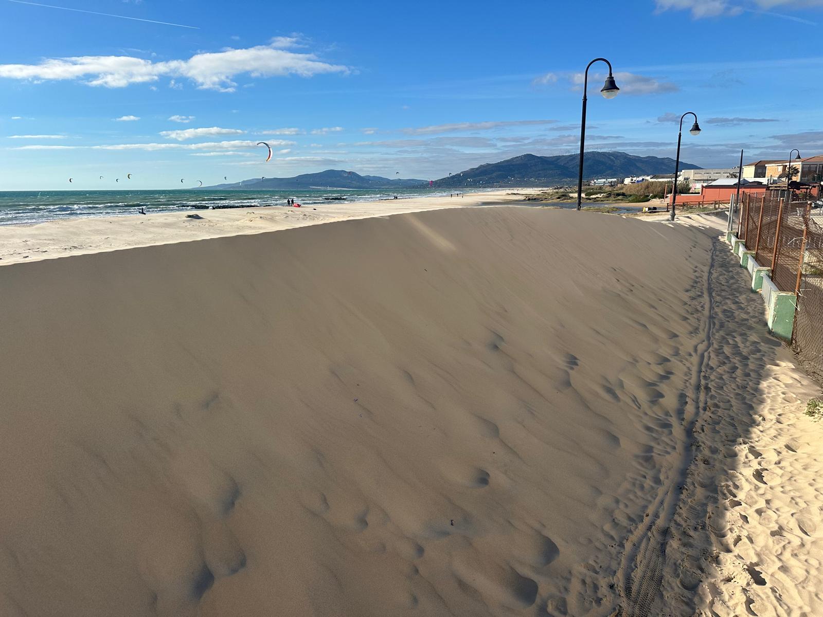 Lleva días así. Tras el último temporal, el viento ha ido acumulando capas de arena sobre el paseo marítimo de Los Lances hasta convertir algunos tramos en una extensión más de la propia playa. Donde debería haber un paso cómodo y accesible, hoy hay dunas improvisadas. Es la foto del día.