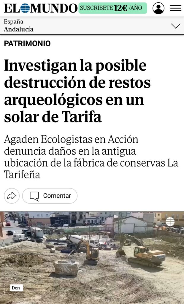 La posible destrucción de restos arqueológicos en Tarifa ya es noticia nacional