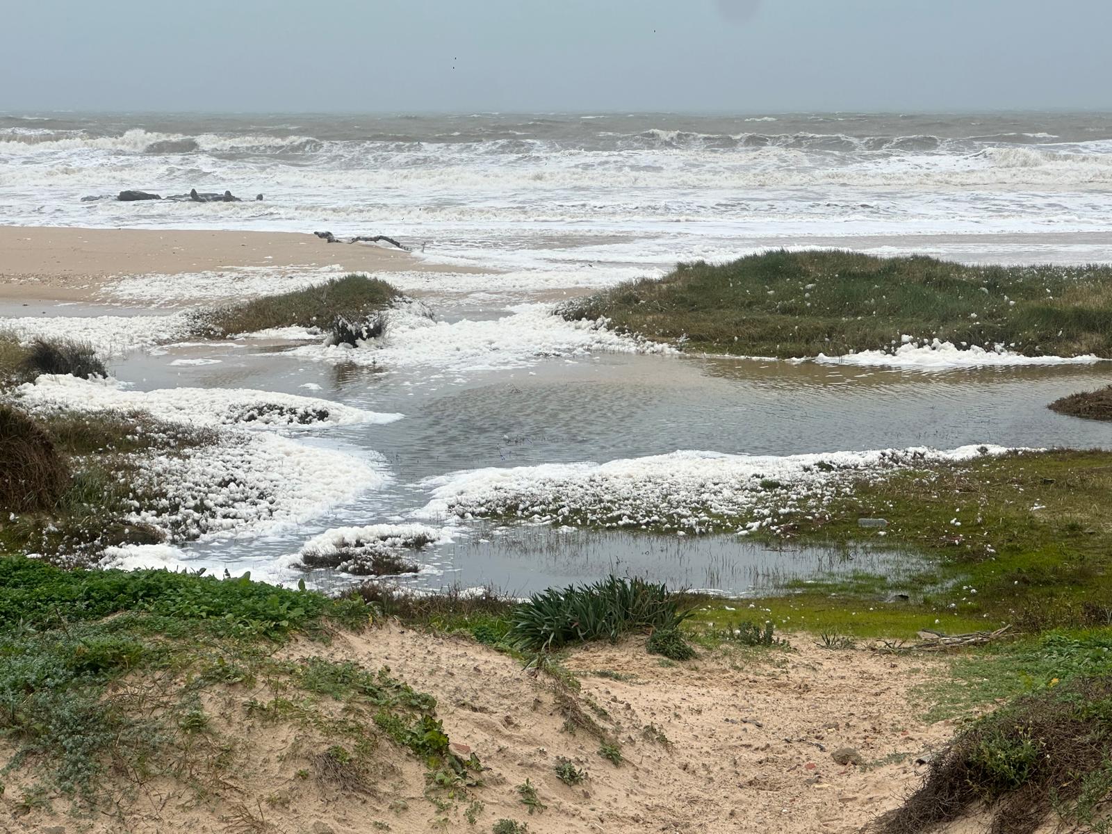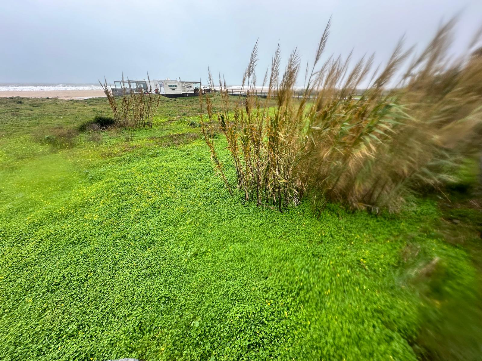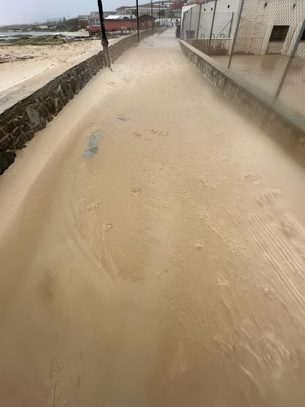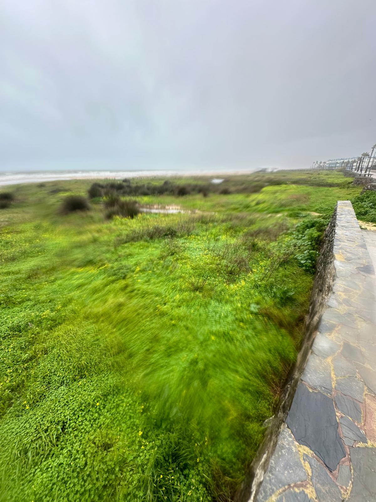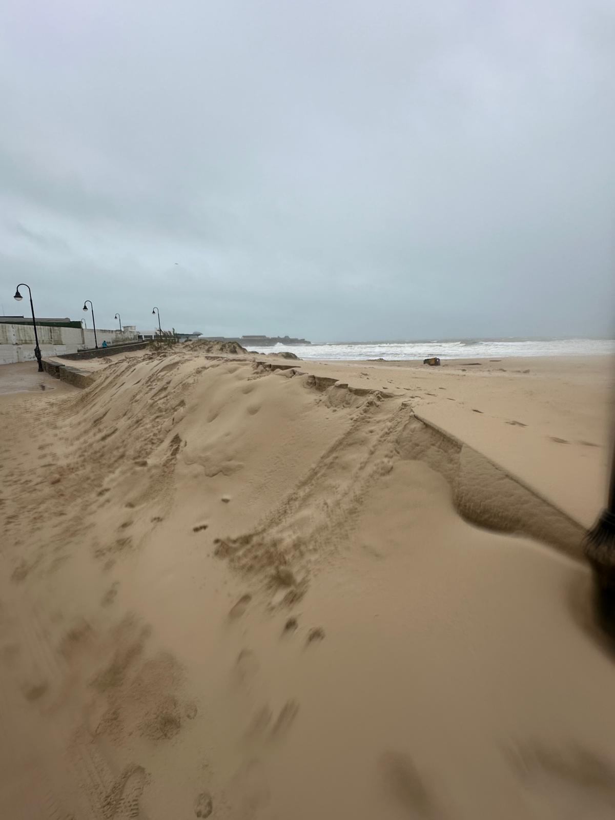 Las imágenes captadas tras el paso del temporal muestran pasarelas arrancadas y esparcidas como hojas, dunas desplazadas sobre caminos, arenas que conquistaron el asfalto y el mar desbordándose hacia la tierra, borrando durante unas horas la frontera entre ambos mundos. En la costa, el oleaje rompía sin tregua mientras la lluvia y el viento dibujaban un paisaje cambiante, verde y ocre, húmedo y desnudo.