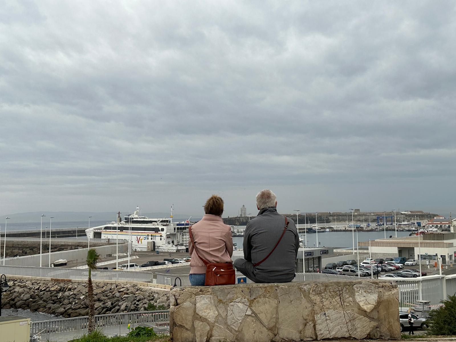Ante ellos, el Estrecho se abre como una promesa y como un recuerdo. A su derecha, el puerto; al frente, el ferry que va y viene cruzando uno de los lugares más cargados de historia del mundo. Detrás de la neblina se adivina la silueta de otra orilla, tan cercana que casi parece poder tocarse. África aparece y desaparece entre las brumas, igual que lo han hecho durante siglos los sueños de quienes miraron estas mismas aguas.