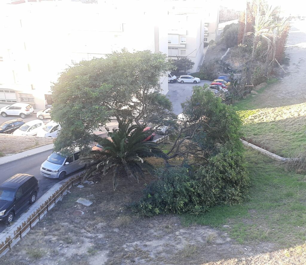 La foto del día de hoy va para la Barriada Jesús Nazareno, donde en una de sus zonas ajardinadas se encontraba (y decimos encontraba), uno de los árboles más antiguos de la ciudad que su sombra regalaba a todo aquel que acaloradamente subía la cuesta «parriba».
