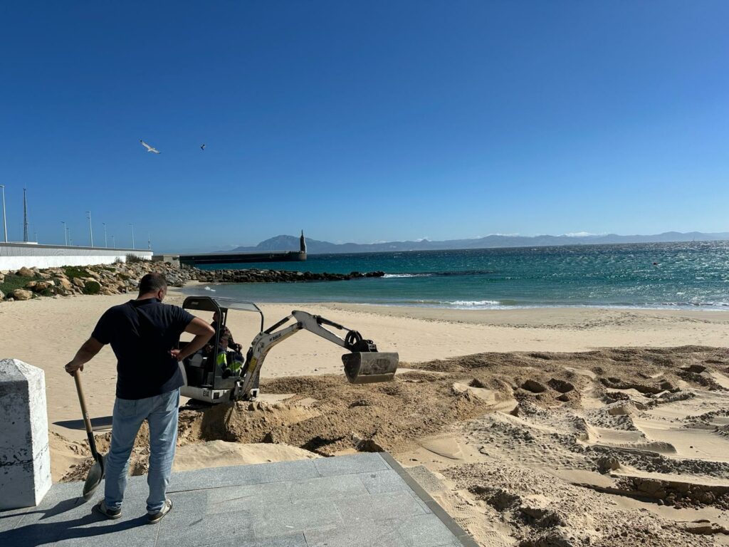 Es la foto del día, la playa más popular de los tarifeños, la playa mediterránea de Tarifa en obras….