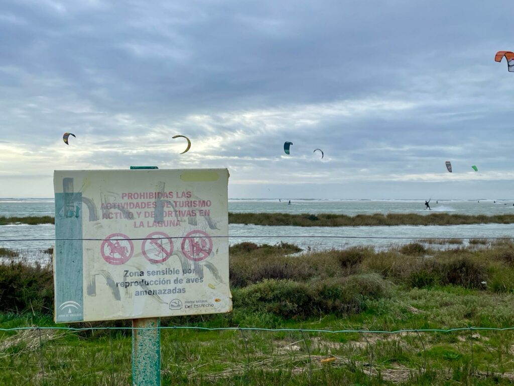 La imagen los dice todo, practicar Kite en las lagunas que se crean en los Lances es muy perjudicial para la fauna local, para uno de los tesoros de Tarifa, su patrimonio ornitológico. Pero ellos a lo suyo que es más cómodo navegar con el agua que solo te llegue a la rodilla…»¿que les importa a los que viven allí?»
