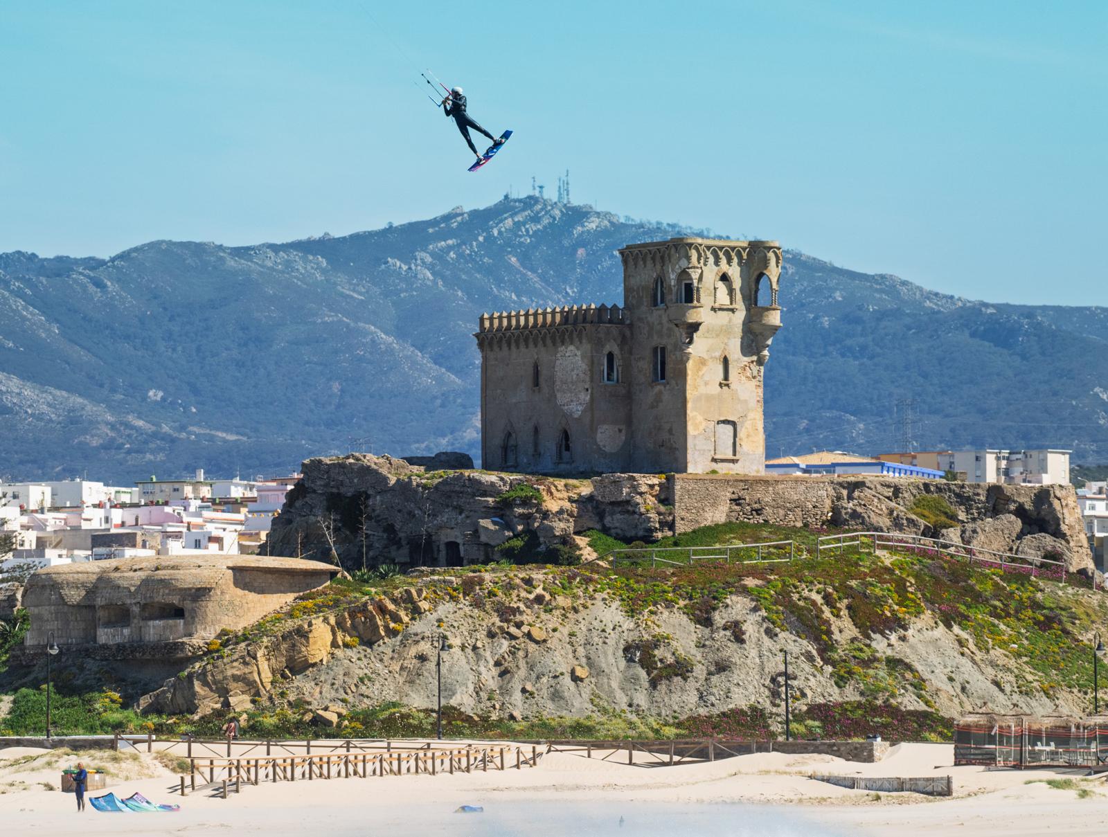 Estas cosas solo pasan en Tarifa… aunque no para todos. Esta Semana Santa el viento ha permitido alturas espectaculares en el kite, con riders elevándose por encima del skyline más reconocible de la ciudad. Y justo en ese momento, Ben Welsh estaba allí para capturarlo.
