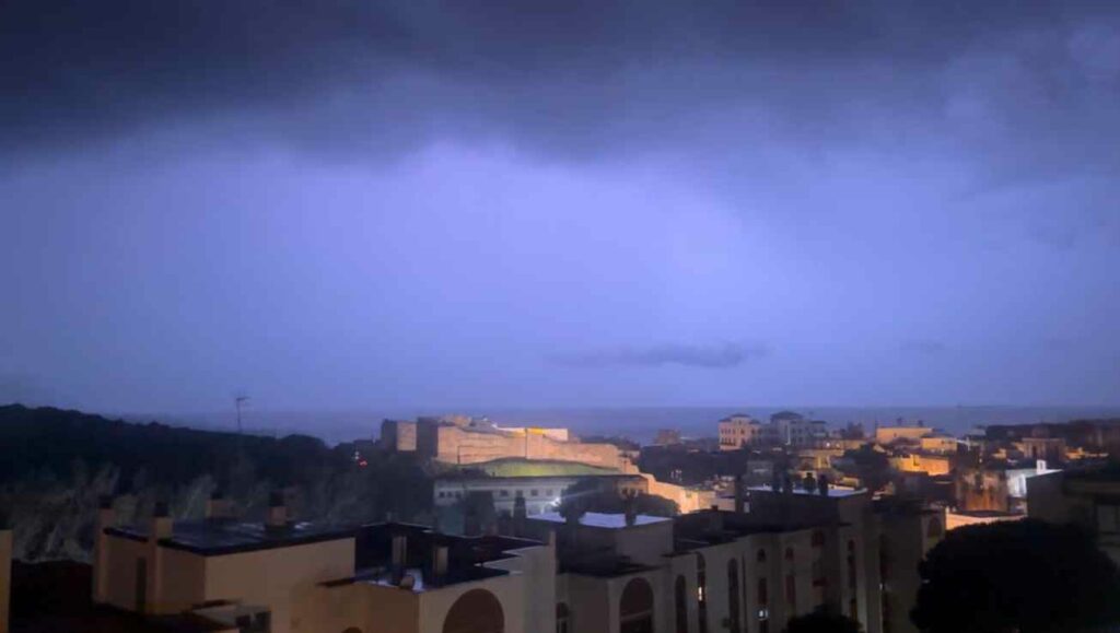 Noche cerrada en Tarifa bajo el relámpago