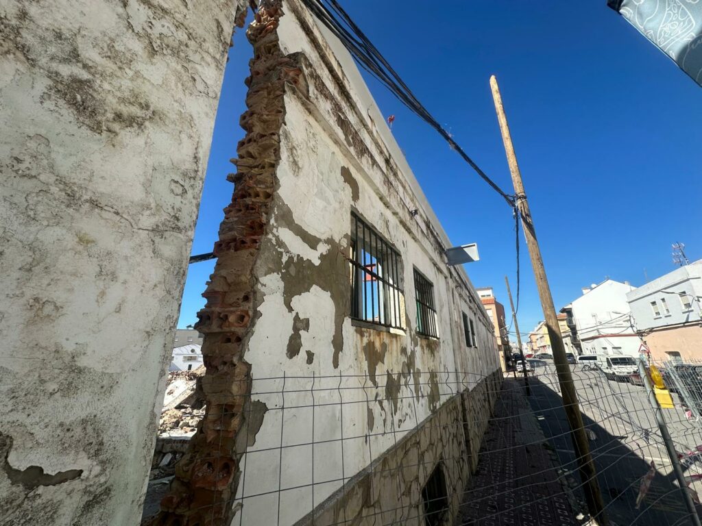 No hay que ser arquitecto par ver el peligro, al menos la sensación, ya que  una grieta por la cabe una cabeza «suspende» un muro en proceso de demolición. Es en la calle San Sebastián y otra vez una obra que ya estuvo en el ojo del huracán por las fotos de obreros sin arnés ni protección retirando amianto, tema denunciado varias veces por colectivos de Tarifa. «Un vela a la Virgen de pongo todos los días, esperemos que no venga una levantera» comenta un vecino de la zona que sufre a diario el derribo, la obra….es la foto del día.