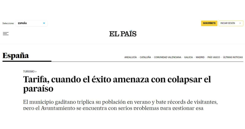 Hoy 11 de agosto el diario de mayor tirada nacional en España pone de ejemplo a Tarifa como modelo de gestión en colapso “Tarifa era un pueblo blanco, limpio, donde se vivía bien. Pero los de aquí ya no vivimos bien” apunta un testimonio en el reportaje del reconocido periodista Jesús A Cañas.