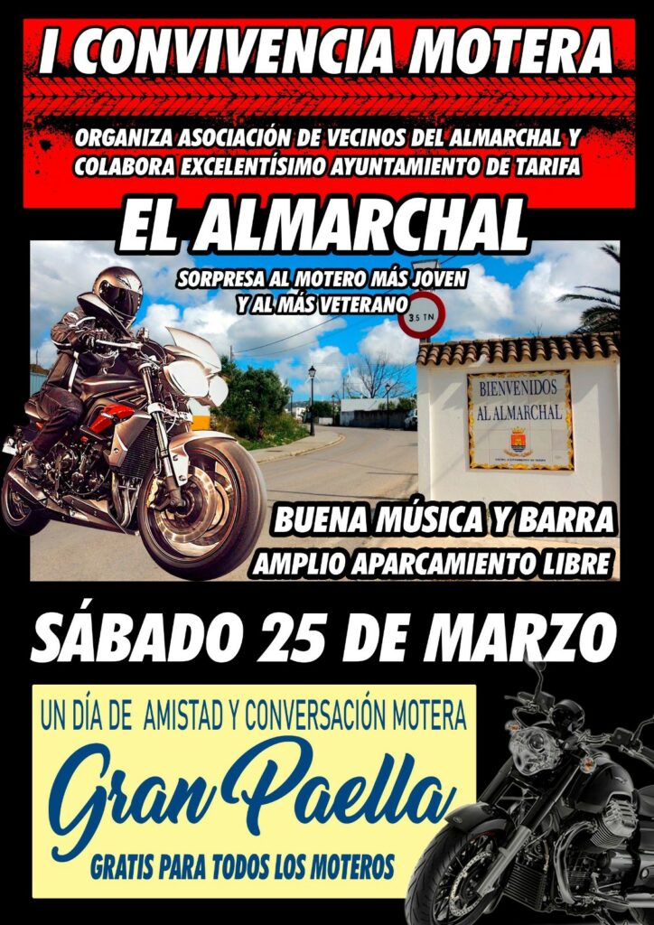Nueva cita para los amantes del motor y de las motos en El Almarchal. En esta pequeña localidad, perteneciente al término municipal de Tarifa, tendrá lugar una convención de motos el próximo sábado 25 de marzo.
