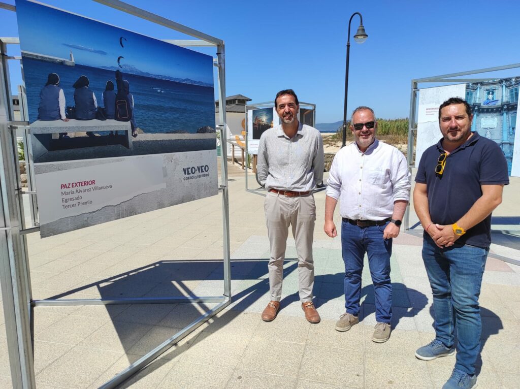 El alcalde de Tarifa, Francisco Ruiz Giráldez, junto al vicerrector de Cultura de la Universidad de Cádiz, José María Pérez Monguió y el concejal de Cultura en el Ayuntamiento de Tarifa, Francisco Terán Reyes ha inaugurado este mediodía, en el paseo marítimo, a la altura de la barriada Cardenal Cisneros la exposición fotográfica “Veo-veo: con los cinco sentido”.