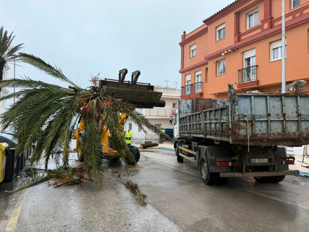 Cortada la carretera del Santuario de la Luz en Tarifa por el temporal Leonardo