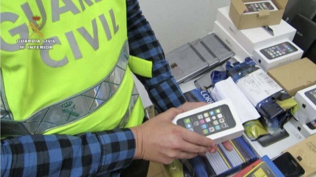 La Guardia Civil logró localizar una primera nave sita en el polígono industrial de Palmones (Los Barrios). En esta nave, donde se detuvo a sus dos “guarderos”, se encontraron cientos de objetos empaquetados y paletizados, procedentes de diferentes localidades españolas y extranjeras, entre los que se encontraban 759 terminales móviles smartphones sustraídos. Además, en este mismo lugar, se encontraron 45 patinetes eléctricos, 180 ordenadores portátiles, diferentes dispositivos electrónicos, informáticos y fotográficos o cajas de ropa etiquetadas de primeras marcas.