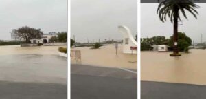 Cortada la carretera del Santuario de la Luz en Tarifa por el temporal Leonardo